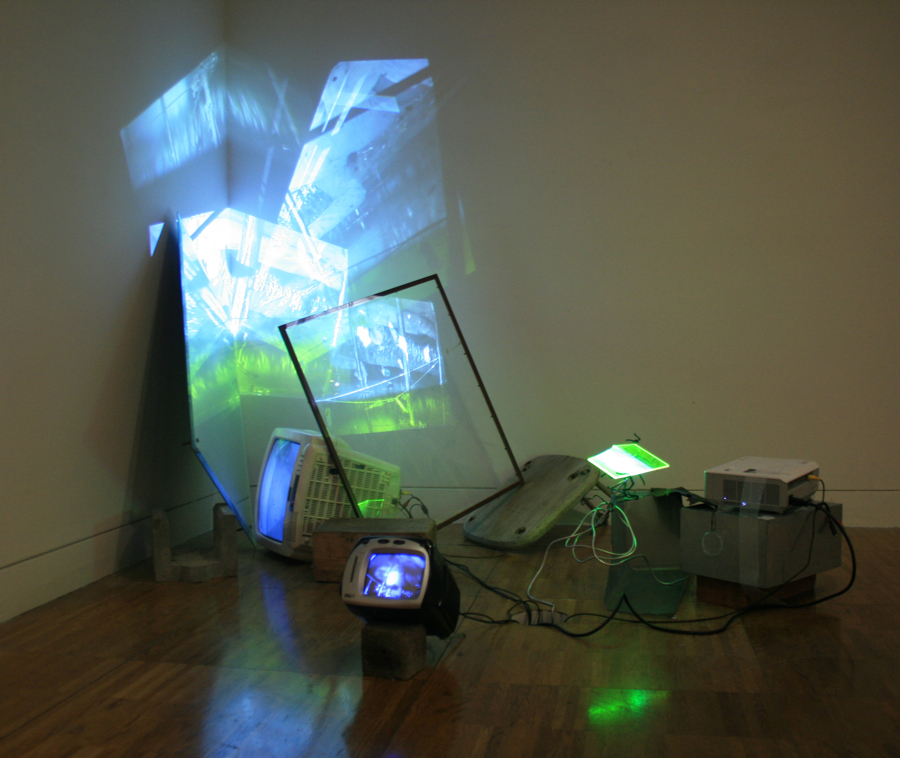 Huaca, installation view (2012) mixed media assemblage, hidden performance, cctv cameras, projection and monitors, dimensions variable approx. 230cm x 100cm x 150cm