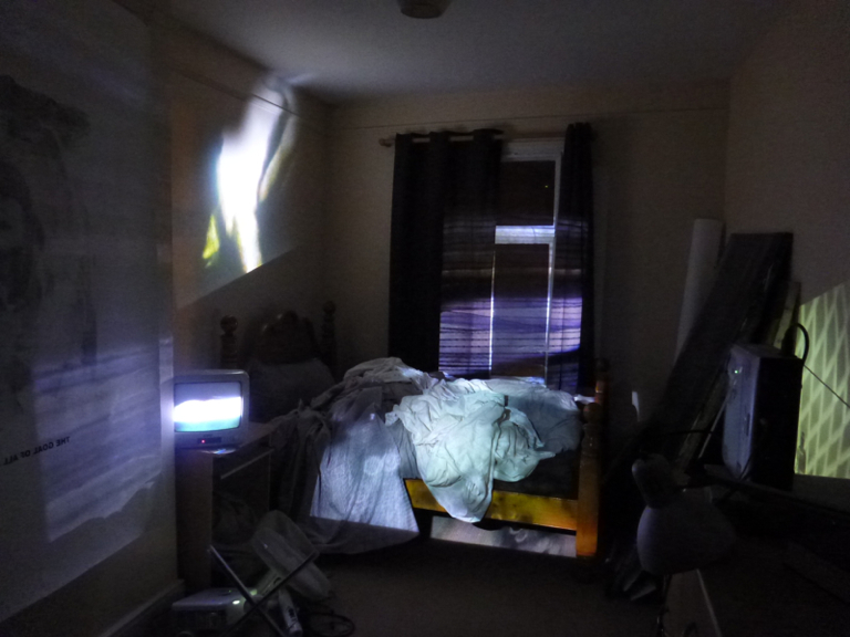 Amei is a site specific multi-projection and monitor AV installation which was exhibited at Reel #4 at The Monks Gallery, Lincoln in 2013. The five video pieces occupy a bedroom, overlaying the space with a shuddering motion of twisting bodies and fabrics.